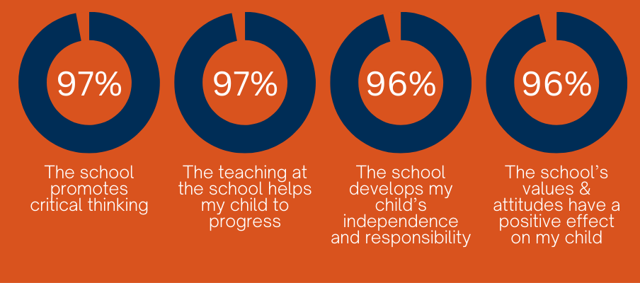 We are proud of the positive feedback we receive from parents about the education their children receive. But it's not just academics, parents also praise our enriching extracurricular activities and the welcoming community we've fostered. They particularly commend our focus on instilling values like respect, kindness and empathy.