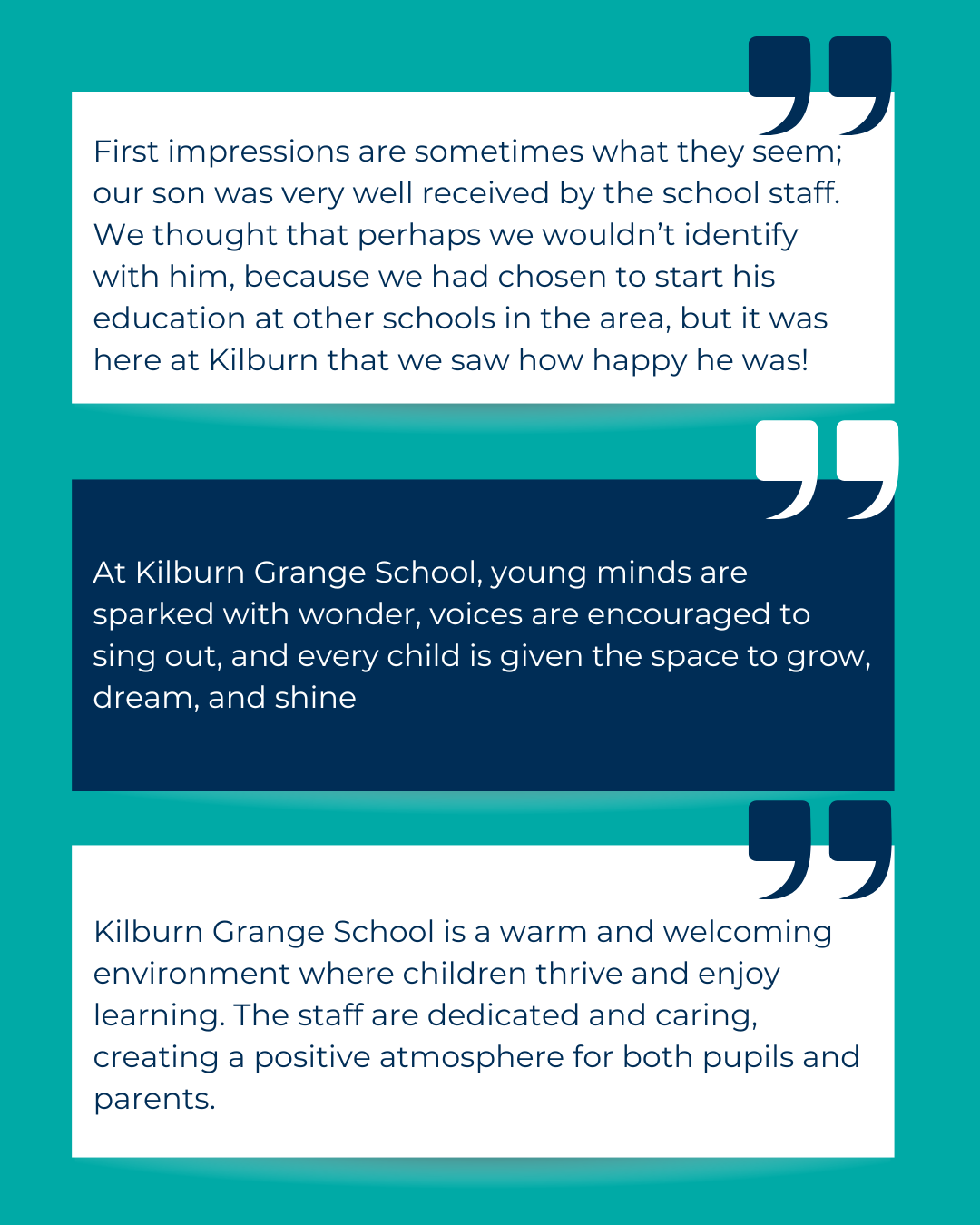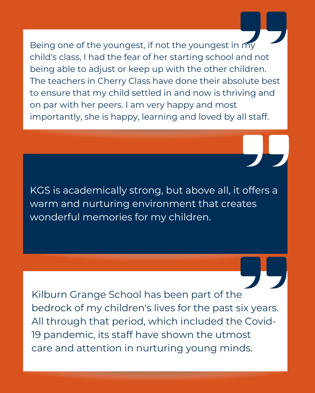 Testimonials from 2025 surveys about the positive impact of our school