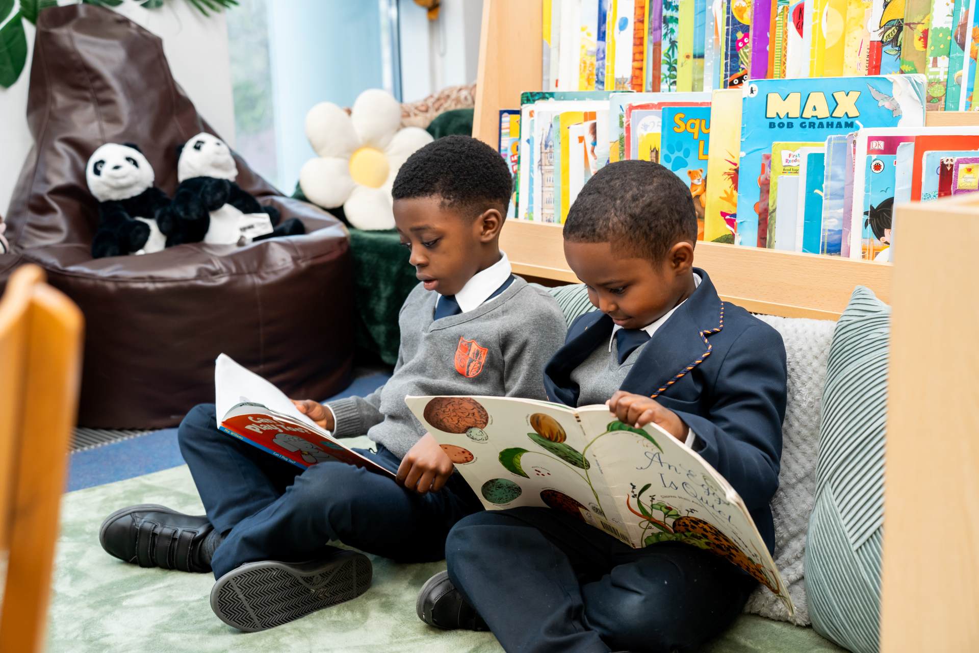 To nurture a deeper love of reading, teachers dedicate 10 minutes at the end of most days to reading aloud to their classes. As part of our termly teacher swaps, educators also have the opportunity to read to children in different year groups, fostering a broader appreciation for stories and diverse teaching styles. Above all, children look forward to bi-weekly sessions of quality reading time in our vibrant school library, where they can immerse themselves in a wide range of books.